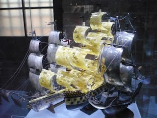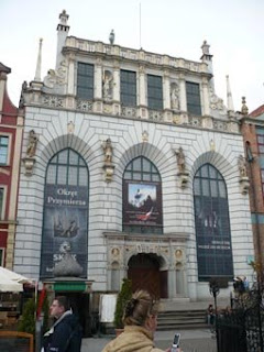 El siguiente edificio en esta Ruta Real es la "Antepuerta de la calle Dluga". Como estaba lloviendo, empezamos el día visitando este lugar. Este edificio esta compuesto por "La Casa del Verdugo", donde tenían lugar ejecuciones y torturas públicas, y "La Torre de Prisión" en cuyo interior estaba la prisión municipal. Pero hoy esta torre acoge el oro de Gdansk, "Museo de Ámbar".