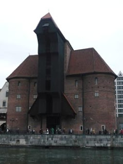 Este es el monumento mas característico de Gdasnk. Esta situado sobre el Río Motlawa y es el ascensor portuario más grande de la Europa Medieval. Era empleado para el trasbordo y levantamiento de los mástiles de los barcos. En su interior se encuentra un mecanismo de transmisión reconstruido y activo, una enorme rueda de madera, antaño movida por la fuerza de las piernas de los obreros, que permitía el levantamiento con el uso de la grúa superior de hasta 2 toneladas de peso a la altura de 27 metros. La grúa inferior junto con la superior subía un peso de 4 toneladas a 11 metros.